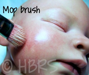 Identical to my all-time favorite brush, the Maxine's Mop! This brush is an extra soft, natural fiber mop. Naturally absorbent goat hair can be used for various techniques, from washes to dry blending. The white goat hair remains soft even when wet. Excellent for washes, and the oval mop shape offers additional control for blending and softening.